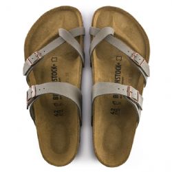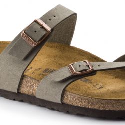 Il sandalo BIRKENSTOCK Mayari è un infradito dalla forma slanciata con cinturino incrociato attorno all’alluce. Il riuscito connubio di design e comfort fa di questo infradito, elegante e comodo al tempo stesso, la scelta ideale per donne e uomini attenti alla moda. La tomaia è in materiale sintetico Birko-Flor® dermoaffine e resistente e presenta un raffinato effetto Nabuk. Grazie alla speciale lavorazione, la tomaia può essere facilmente scambiata per vera pella sia per colore che per texture.